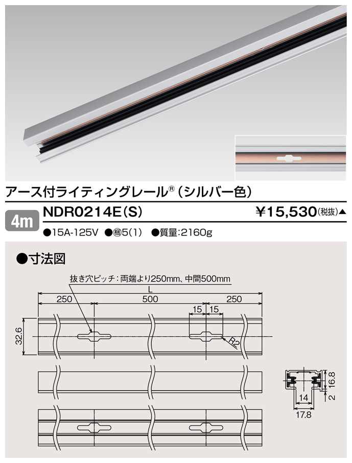 6形アース付レール2m白
