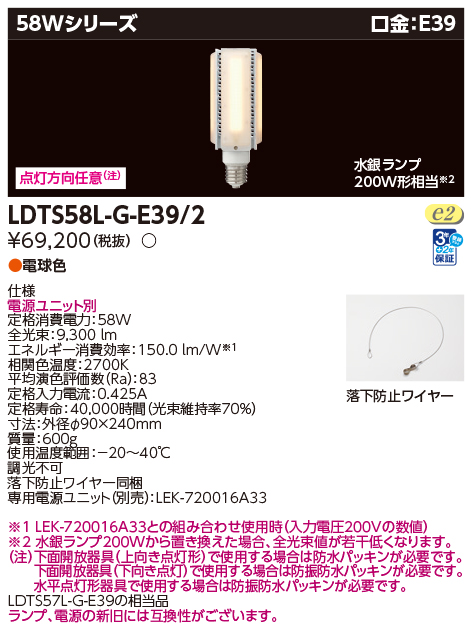 ¥69,200 9,300 lm 電球色(2700K) Ra83
