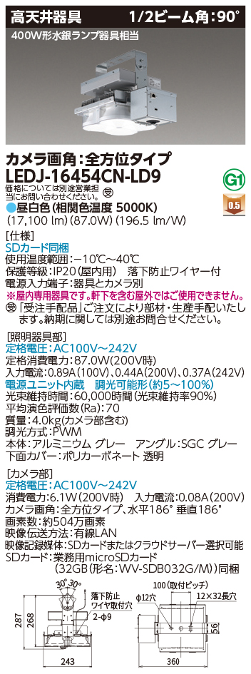 | エネルギー消費効率 | 192.7lm/W(100V) 196.5lm/W(200V) 196.1lm/W(242V) |