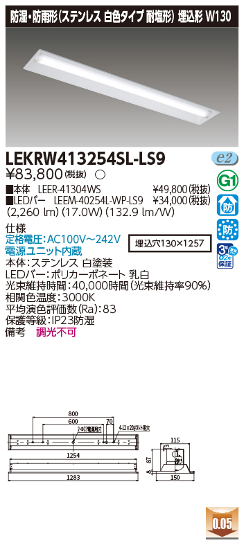| 埋込下面開放器具 | LEER-41304WS |